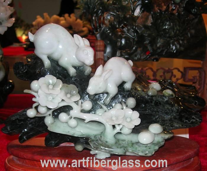 Beautiful Jade Carving. A Beautiful designed carving of Rabbits Play and jump.